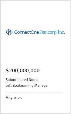 KBW's Capital Markets Department operates in the North American and European securities markets. We offer equity, equity-linked, debt, and balance sheet management products, and provide advice and guidance through every phase of the transaction process. Capital raising requires the global coordination of our Investment Banking practice, Capital Markets department, and Equity Sales & Trading teams. With the depth of our industry knowledge, we partner companies with well-suited, supportive investors, and work with clients to identify the most appropriate capital structure.