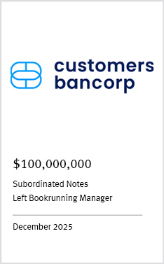 KBW's highly ranked Depositories Investment Banking Department serves banks in North America and Europe. Our core service is strategic advice.