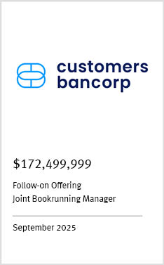 KBW's Capital Markets Department operates in the North American and European securities markets. We offer equity, equity-linked, debt, and balance sheet management products, and provide advice and guidance through every phase of the transaction process. Capital raising requires the global coordination of our Investment Banking practice, Capital Markets department, and Equity Sales & Trading teams. With the depth of our industry knowledge, we partner companies with well-suited, supportive investors, and work with clients to identify the most appropriate capital structure.