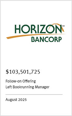 Our team also specializes in capital solutions for the banking industry. Core services in our capital markets effort include public and private placements of equity, debt, mutual to stock conversions and hybrid securities.